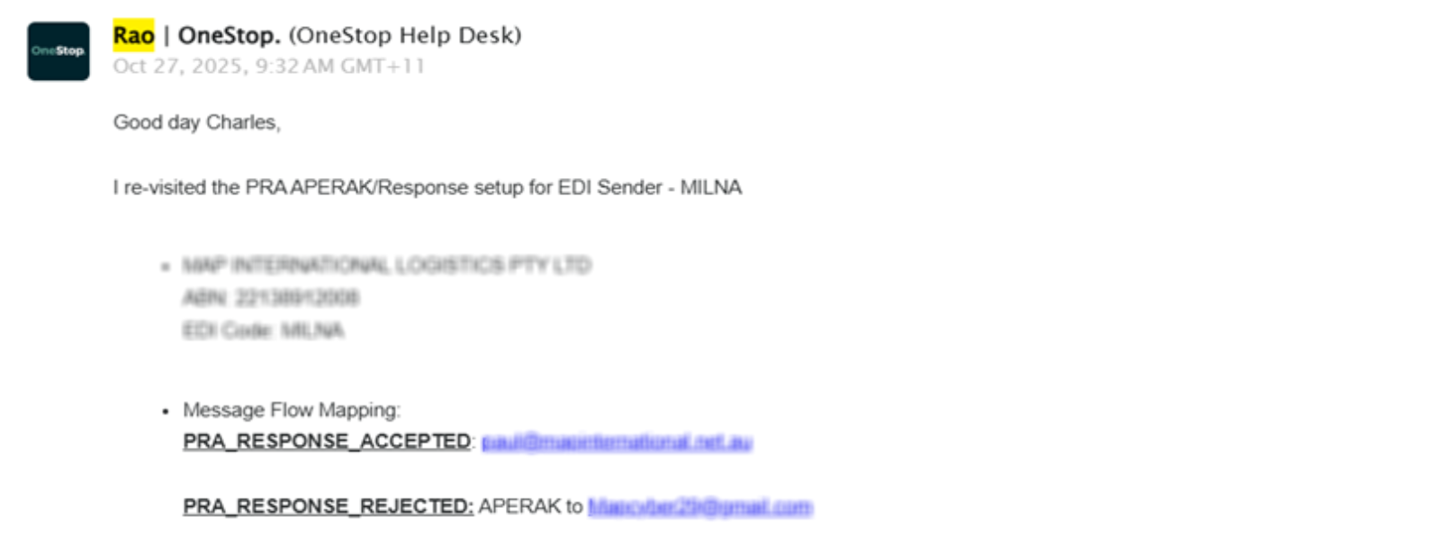 Overview: After migrating a customer from BangIT → Old RAS → New RAS, several issues were encountered with PRA (Pre-Receival Advice) processing and email notifications. The following summarizes the identified issues, workarounds, and final resolution.