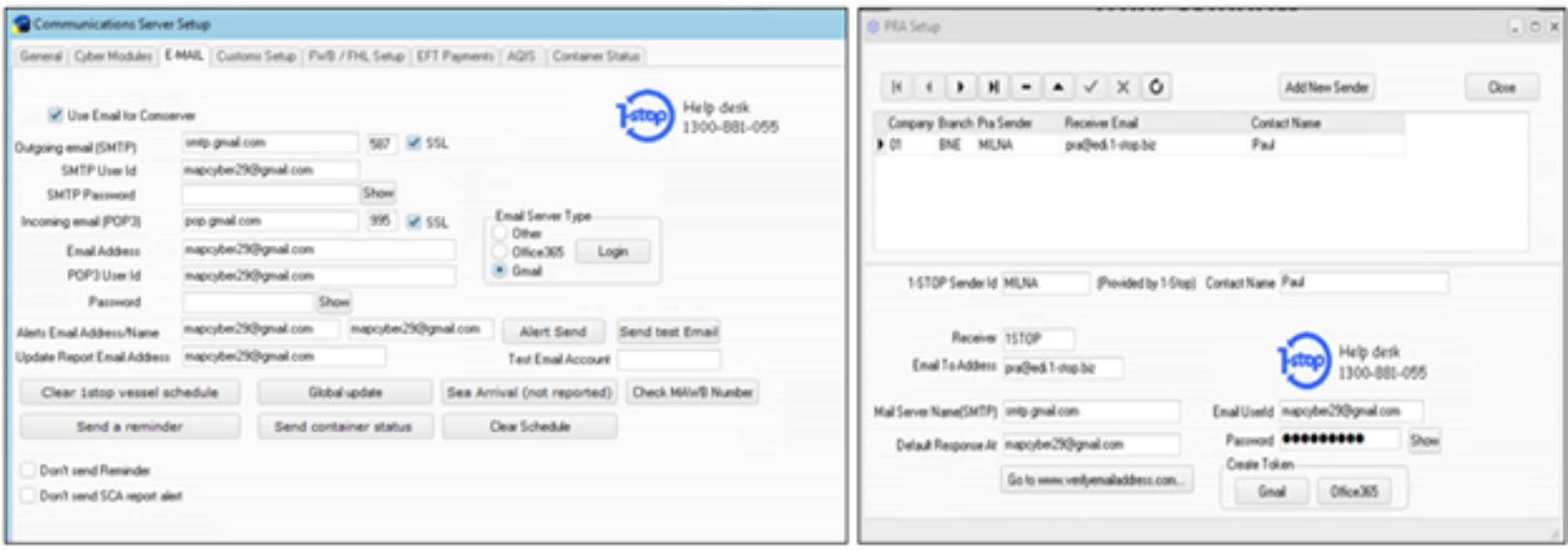 - 1Stop will update the email configuration immediately upon receipt.